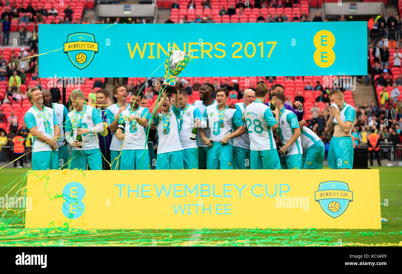 Hashtag United S Player S Celebrate With The Trophy Pictured At The Ee Wembley Cup Final At Wembley Stadium Connected By Ee Stock Photo Alamy