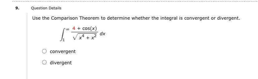Solved 9 Question Details Use The Comparison Theorem To Chegg Com